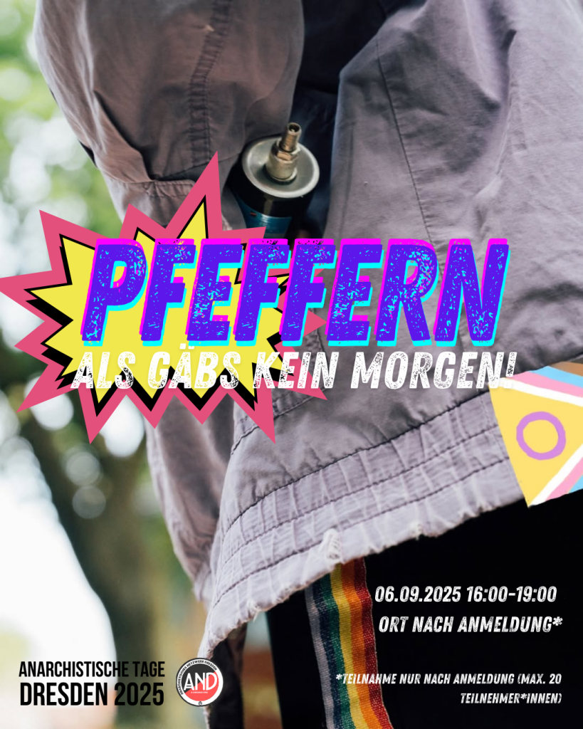 Wie wirkt Pfefferspray, welche Arten und Empfehlungen gibt es? Wir üben Überwindung und Gefahreneinschätzung mit Roleplaysituationen. Am Ende könnt ihr ein Spray kaufen.