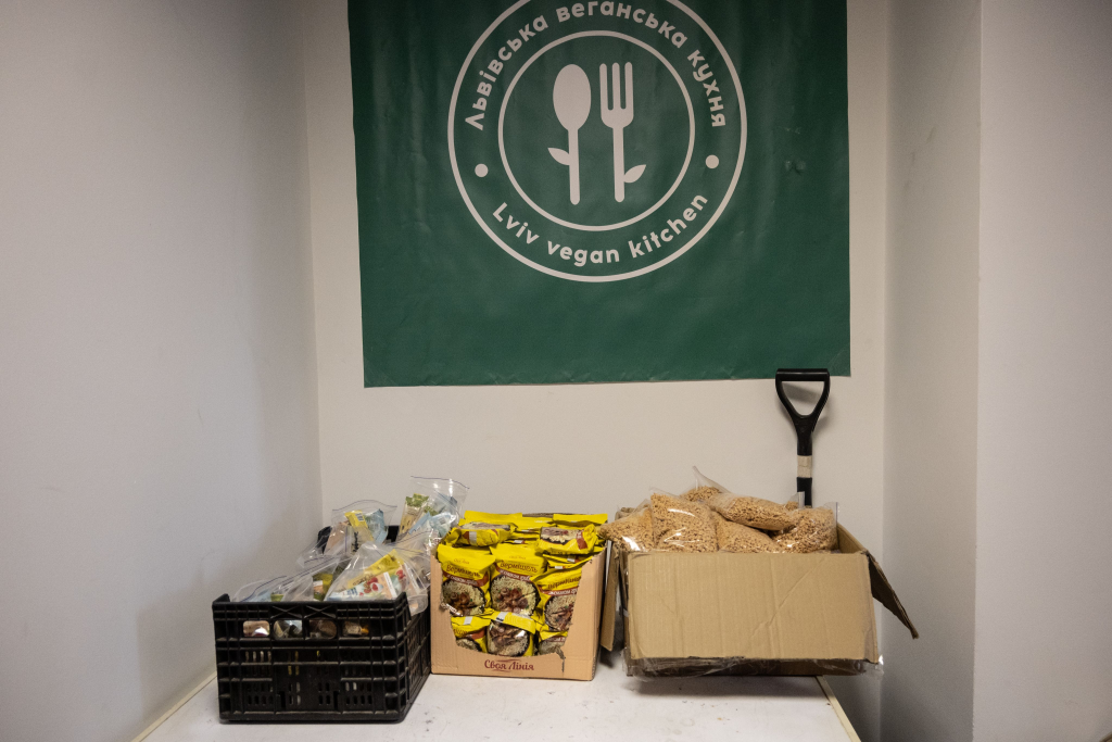 Bis Juni 2024 gab das Kochkollektiv täglich bis zu fünfhundert warme Mahlzeiten an Binnenflüchtlinge aus. Aber als die Spenden ausblieben, mussten sie diesen Teil ihrer Arbeit einstellen – doch das war nicht das Ende der Gruppe. Sie fanden ein neues Betätigungsfeld: Essen für Veganer*innen an der Front. Die vom Militär bereitgestellten Rationen sind nicht vegan und selbst wenn eine Einheit über eine eigene Küche verfügt, gibt es keine vegane Verpflegung, da den Gerichten Fleisch und Käse zugesetzt werden.