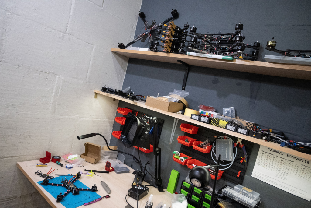 Mykola tells us about the endless rotation of volunteers, a too small group of active people, how everyone is tired. At the start of the invasion, he worked in humanitarian aid, driving to bombed-out villages in the east to bring materials and help displaced people rebuild their homes. One day, he returned to find those same houses reduced to rubble again, their inhabitants once more forced to flee. The futility of Sisyphus work hit him hard. Now, he builds drones for anti-authoritarian soldiers at the front.